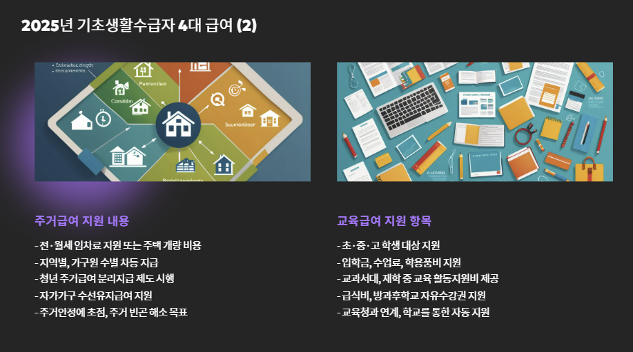 2025년 기초생활수급자 4대 급여 요약
